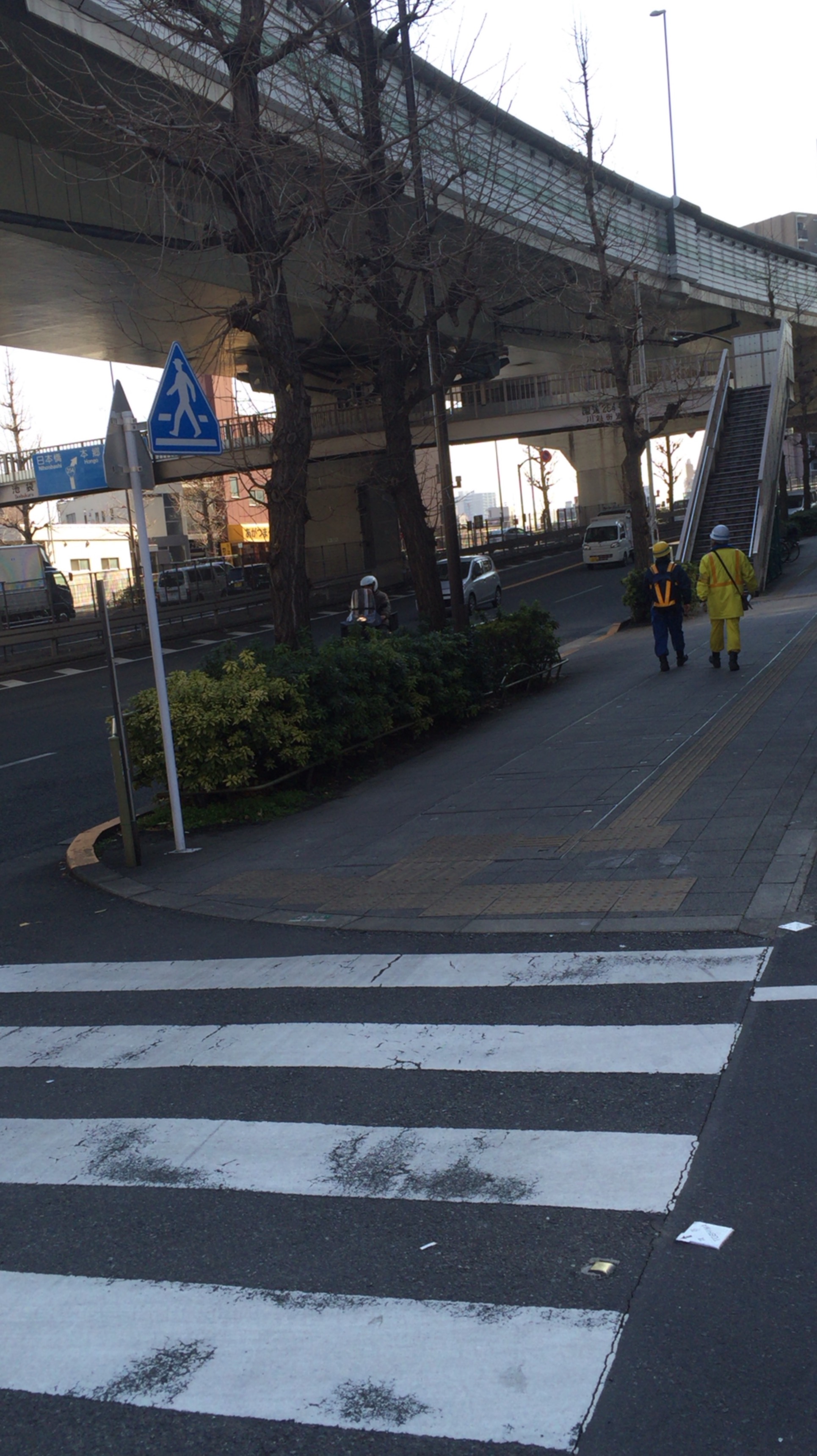 8.突き当りを右に進むと大通りに出ます。そこにある歩道橋を渡ります。