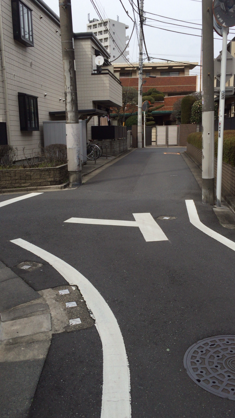 9.歩道橋を降りると目の前にY字路があります。