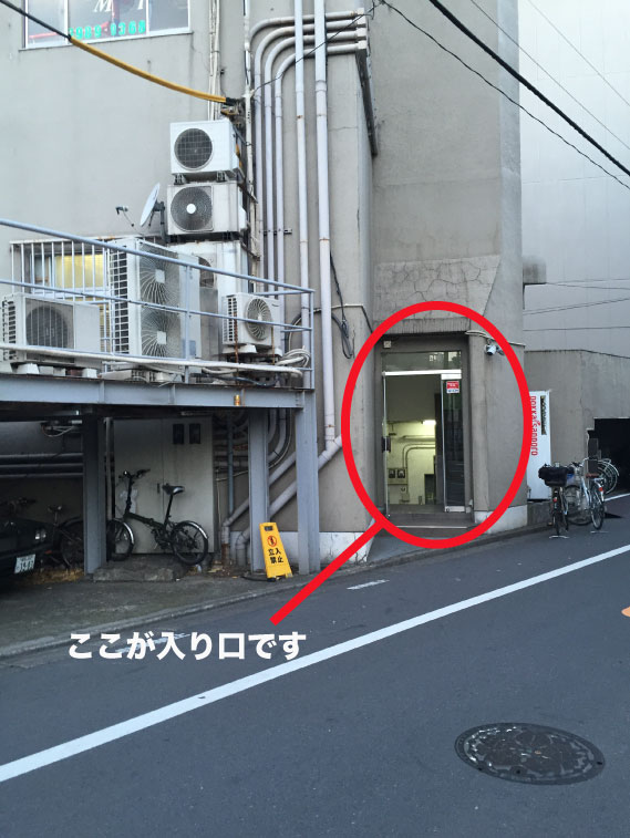 11.ここの入り口から入り、地下に降りるとスタジオがあります。