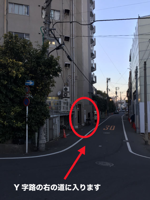 10.Y字路を右側に入ります。